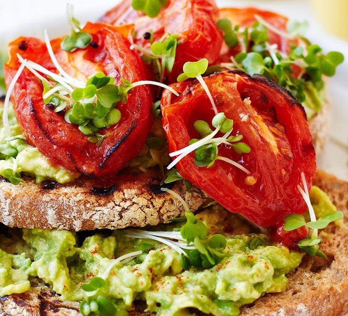 The avocado is smoothly mashed to a rich, buttery texture, delivering a mild and refreshing flavor in every bite. It is paired with sliced, juicy tomatoes that add a burst of freshness and natural sweetness, creating a perfect balance of taste and color.